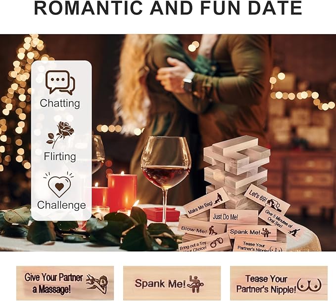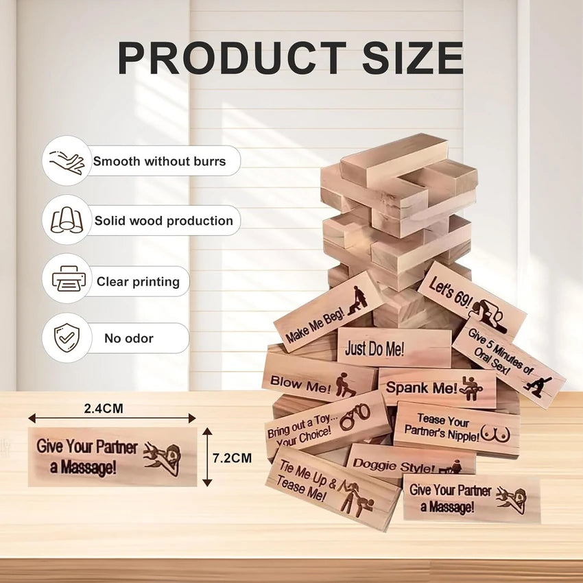 Think you’ve got a strong pull-out game? Let’s put it to the test. This isn’t your childhood stacking game—it’s theraunchy, rule-breaking, inhibition-shattering version designed to get hearts racing and hands shaking (forall the right reasons).